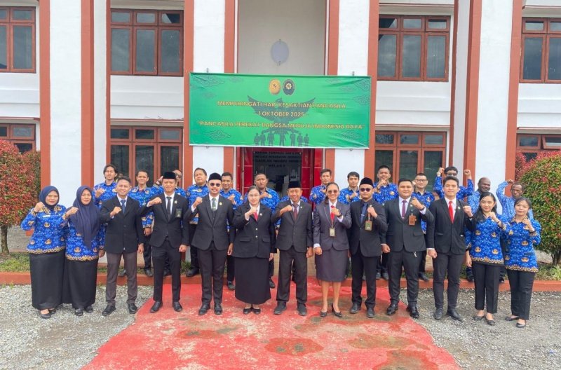 Rabu, 1 Oktober 2025 Pelaksaanaan Upacara Dalam Rangka Peringatan Hari Kesaktian Pancasila pada Pengadilan Negeri Wamena berlangsung khidmat, Ketua Pengadilan Negeri Wamena YM Hirmawan Agung Wicaksono, S.H., M.H memimpin langsung upacara tersebut.